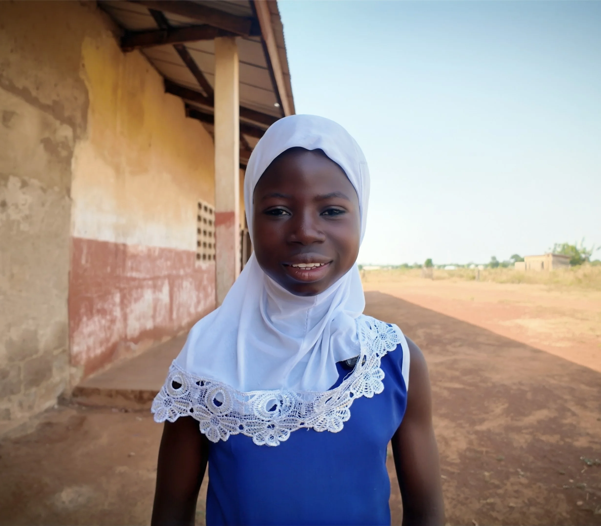Twelve year old Hamidau, in Ghana, spends much of her day fetching water and often misses school. A new water system is expected to dramatically increase local student attendance.
